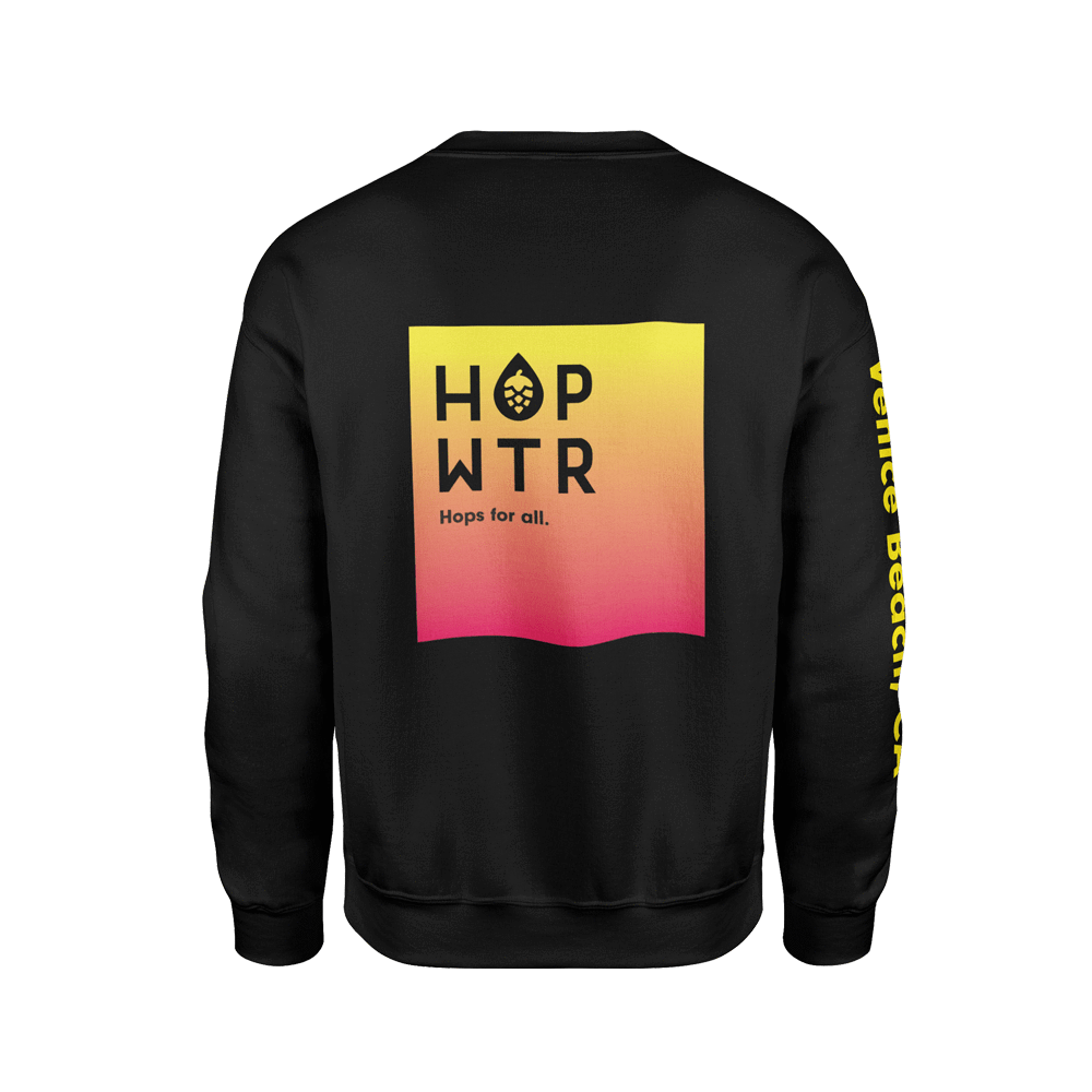 Enjoy your hops when the temp drops. Up your steez with this one of a kind crewneck featuring a black on black embroidered logo on the front and a sunset orange gradient on the back.